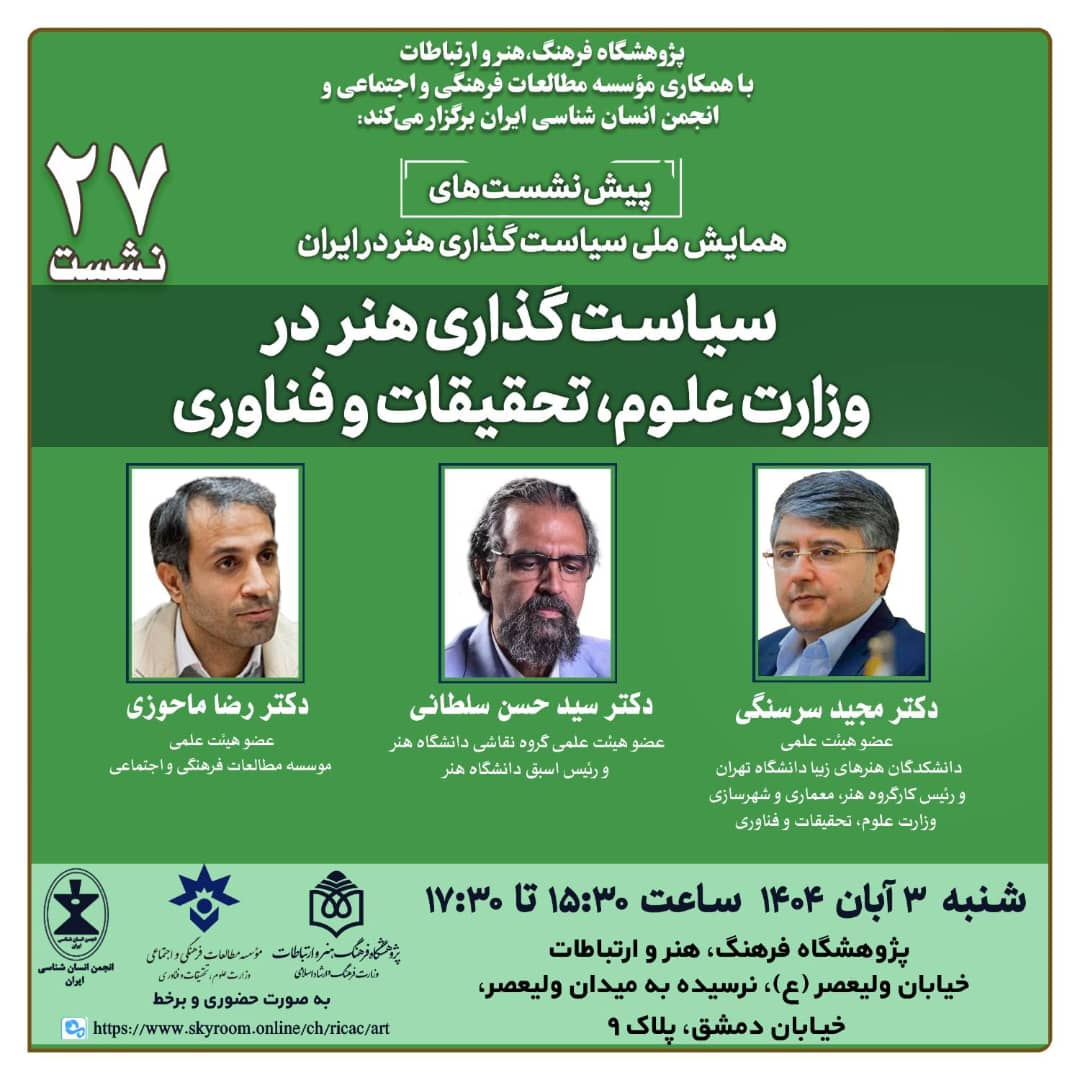 نشست تخصصی «سیاستگذاری هنر در وزارت علوم، تحقیقات و فناوری» برگزار میشود